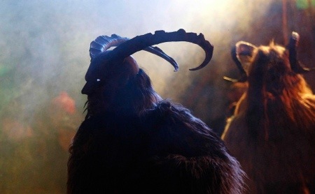 A man dressed in traditional Perchten costume and mask. Photo: Dominic Ebenbichler/Reuters